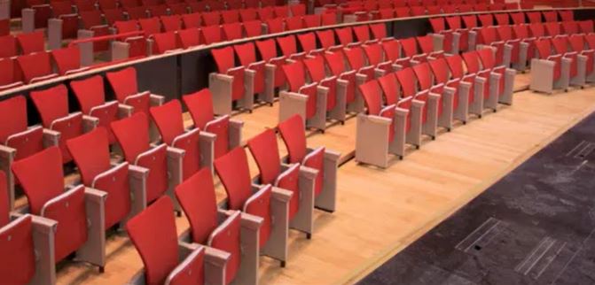 形成平面大廳——前區(qū)座椅或全部座椅收起,使觀眾廳形成局部或整體平面,可用于產(chǎn)品發(fā)布、展覽展示、宴會、晚會、小型體育賽事等。