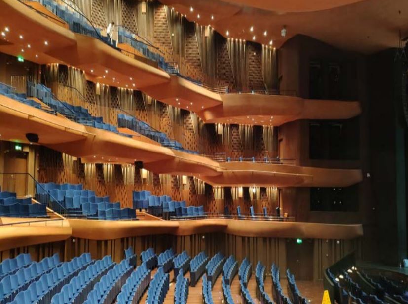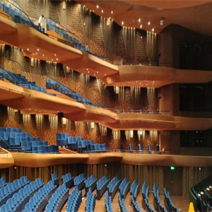 機(jī)械聲學(xué)裝置通常設(shè)置于(劇院等的)觀演區(qū)兩側(cè)、后區(qū)或頂部,是一種先進(jìn)的聲學(xué)調(diào)節(jié)裝置,主要用于優(yōu)化不同演出場(chǎng)景下的聲學(xué)效果。通過聲學(xué)裝置的機(jī)械動(dòng)作改變吸聲或反射面積,調(diào)整觀演區(qū)吸聲量,實(shí)現(xiàn)混響時(shí)間動(dòng)態(tài)變化。同時(shí)具有高頻吸收特性,有效減少聲染色和回聲。